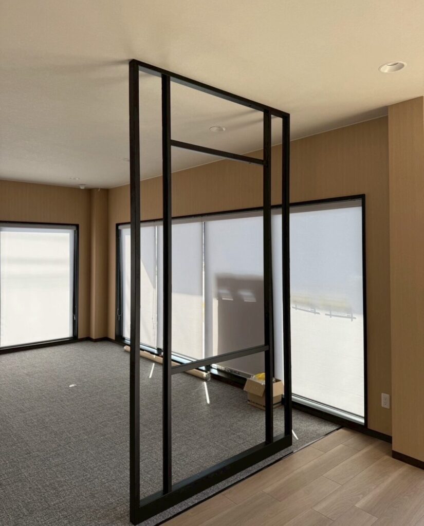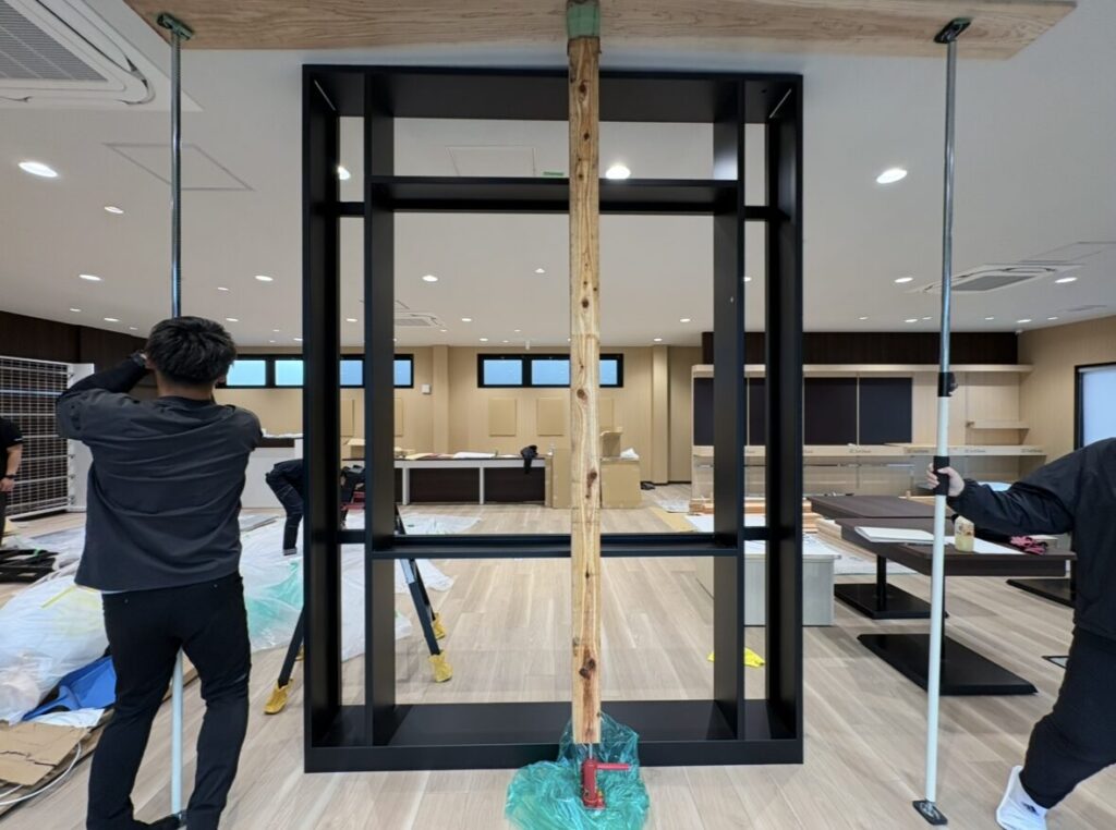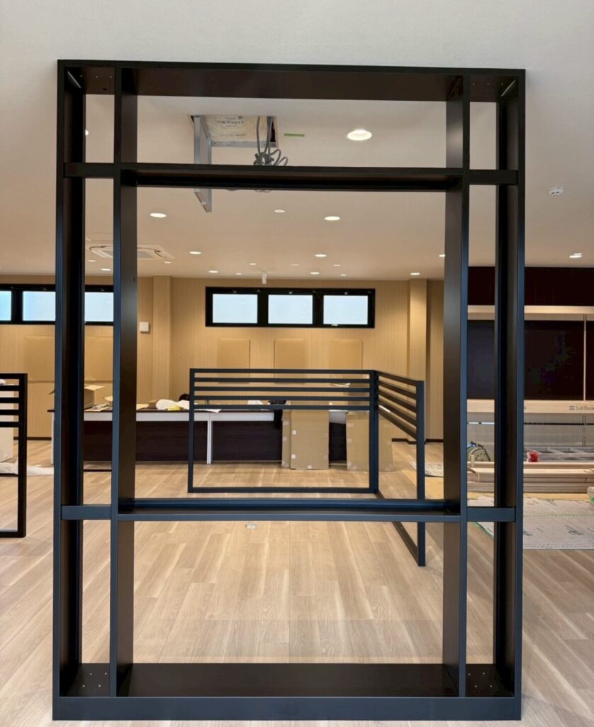 スチール製の枠にメラミンとガラスで仕上げていく工事だったのですが、最初に1番の難関が待ち構えていました。