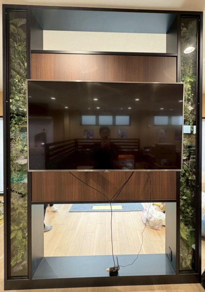 最後にガラスを入れて、壁掛けのモニターを取り付けて完成です。