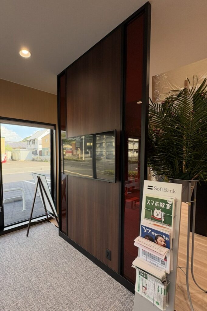 さて、先日ソフトバンク中山バイパス店の什器工事が完了しました。