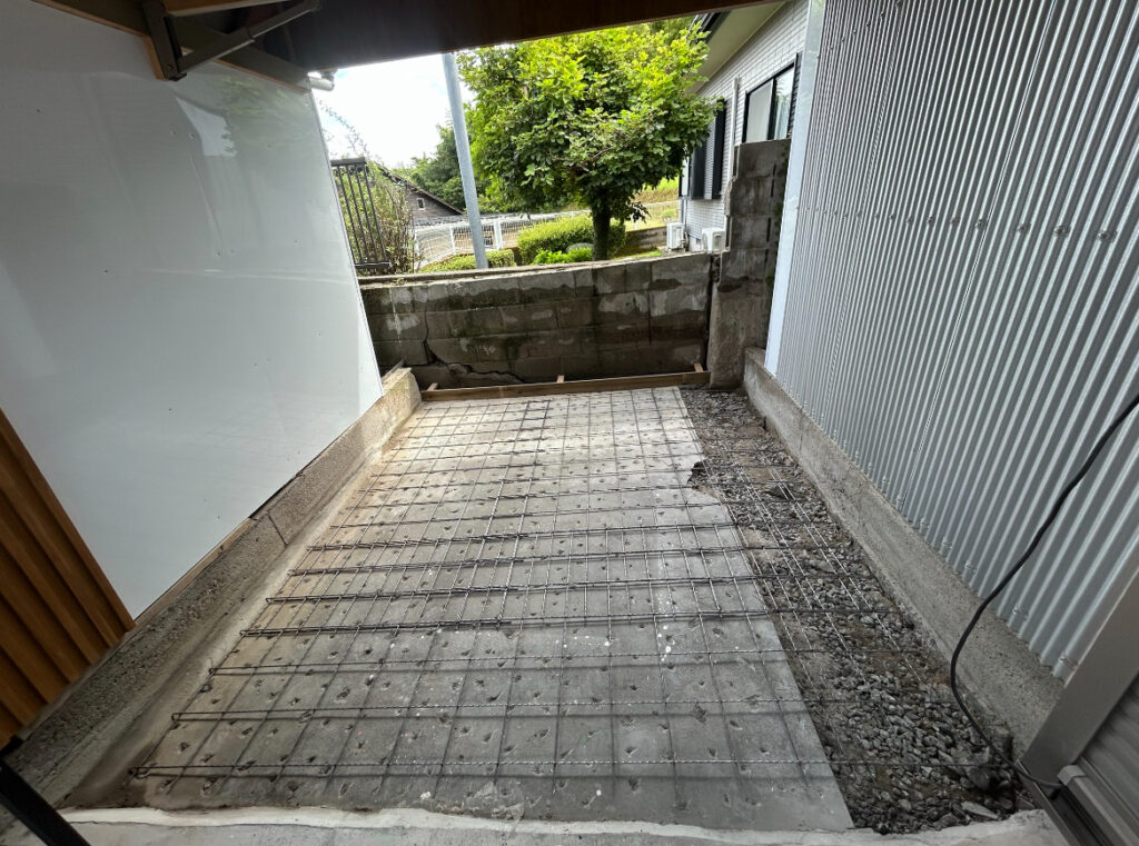 ワイヤーメッシュを敷いた時に、新しいコンクリートの仕上げと高さがあまり変わりませんでした。