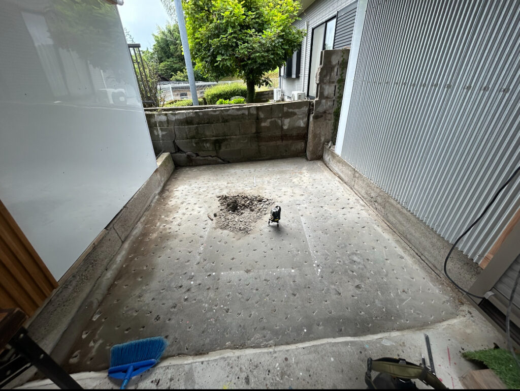雨が降ると既存の土間に水が溜まって作業に影響が出るとのご相談。