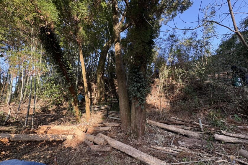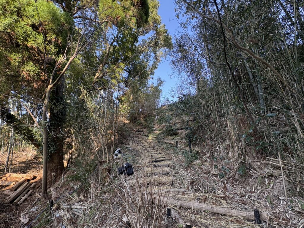 先日の現場の話に戻すと、2025年の11月に藪になっている崖を人が通れるようにしていました。